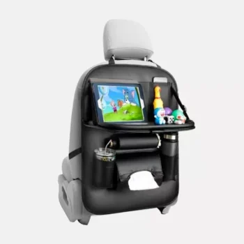 Luxury PU Leather Car Seat Back Organizer with Foldable Tray