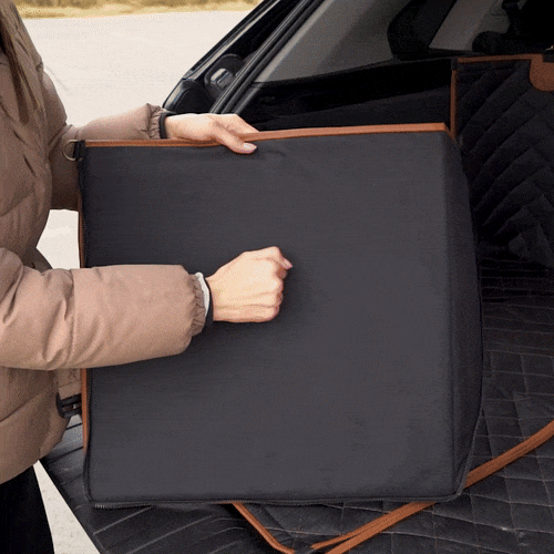 This car dog hammock fits most vehicles with detachable headrests. It also features a unique split design – just undo the zipper in the middle to save space and use this dog hammock on one side of the seat. And when not in use, you can easily fold it up and carry conveniently by the handle. Perfect for travel lovers!