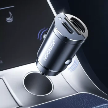 30W Dual Port Car Charger – Fast Charging Type-C USB Mini Adapter with Pull Ring