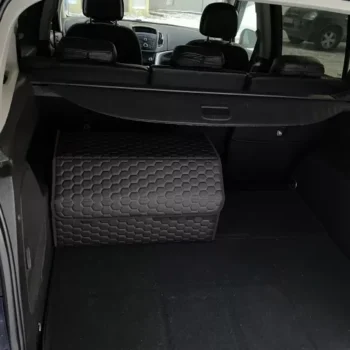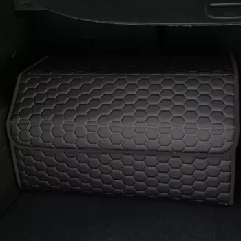 Our trunk organizer features two robust eco-leather handles on its sides, firmly stitched and reinforced with metal fasteners for durability. These handles make it effortlessly portable, ensuring smooth transportation between your car, home, and garage.
