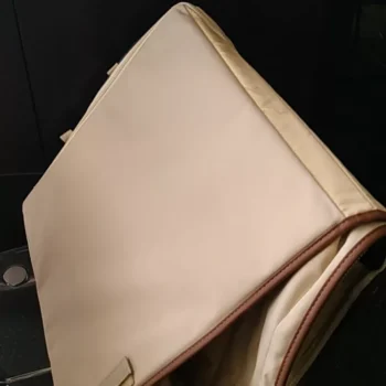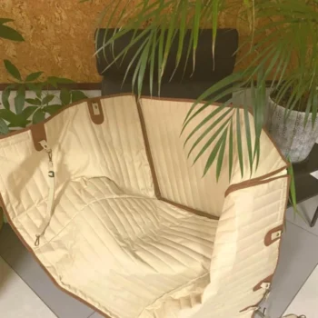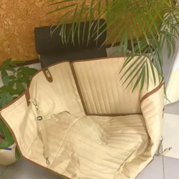 Featuring our branded beige and brown colors, this car hammock includes leather accents and a sleek geometric pattern. It integrates seamlessly into any car interior, offering protection with a stylish touch.