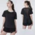 versatile women's gym set: short sleeve sportswear & mesh shorts